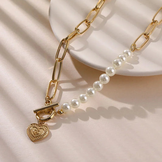 Reduziert 74,80%Gekreuzter Herz-Anhänger mit Perlen in Gold