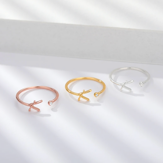 Ring-Set vergoldet mit Kristallen und Vintage-Zirkonias
