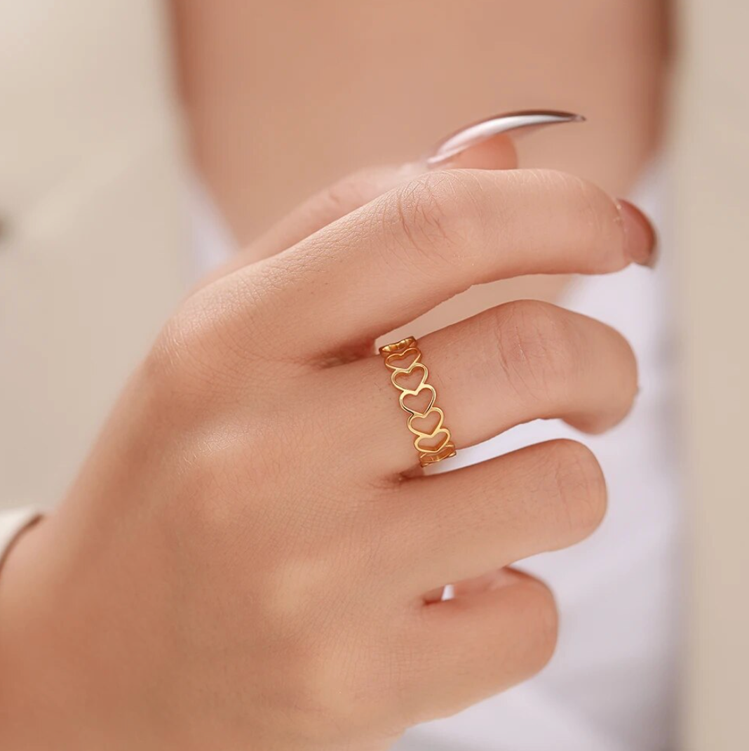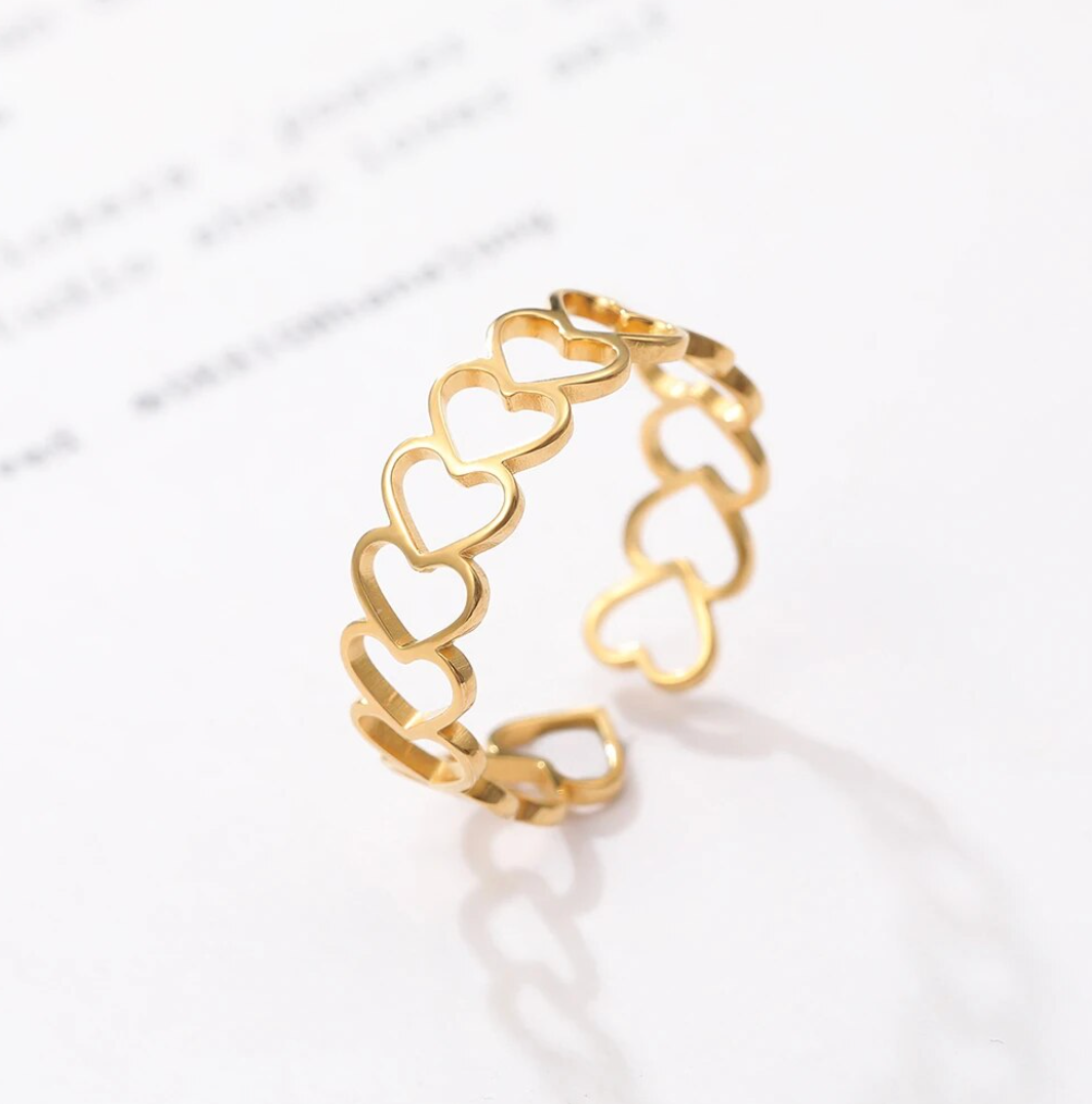 Verstellbarer Ring mit Herzen in Umfang in 18K Goldplattierung
